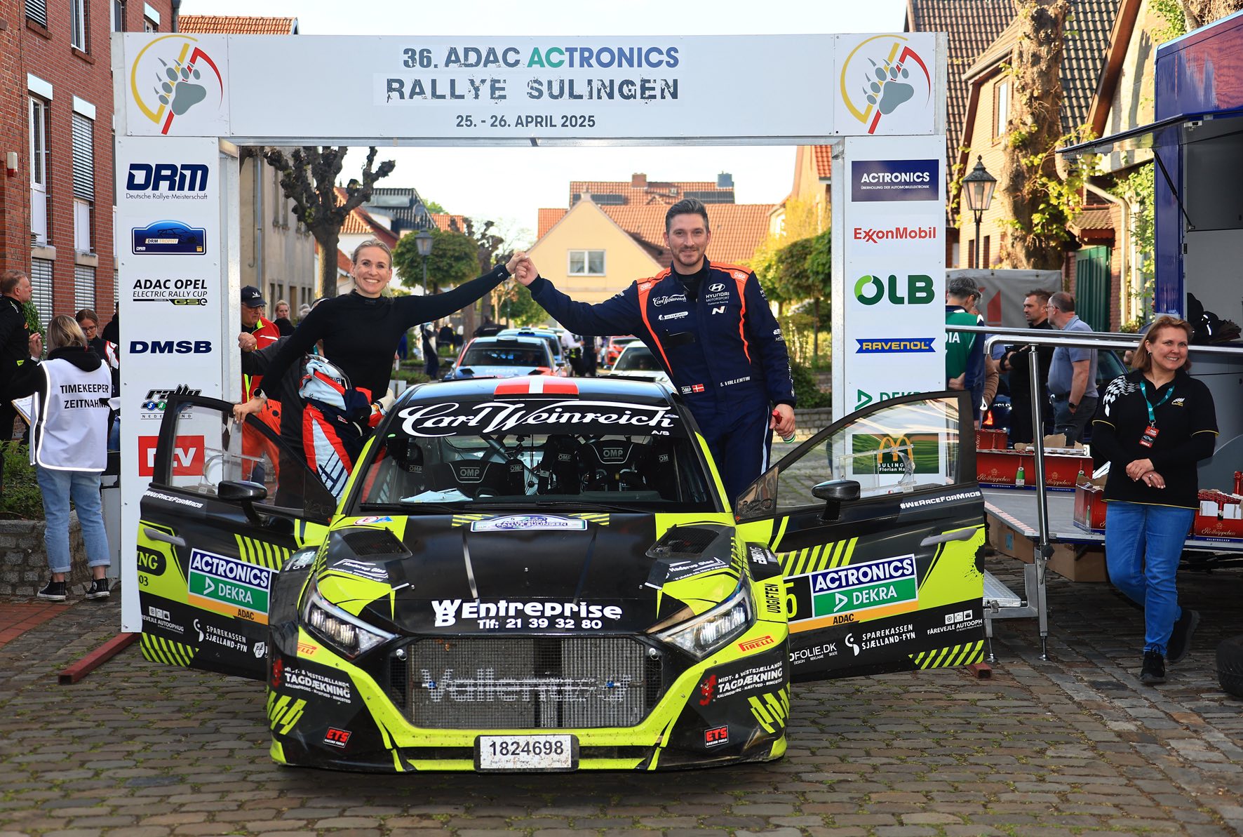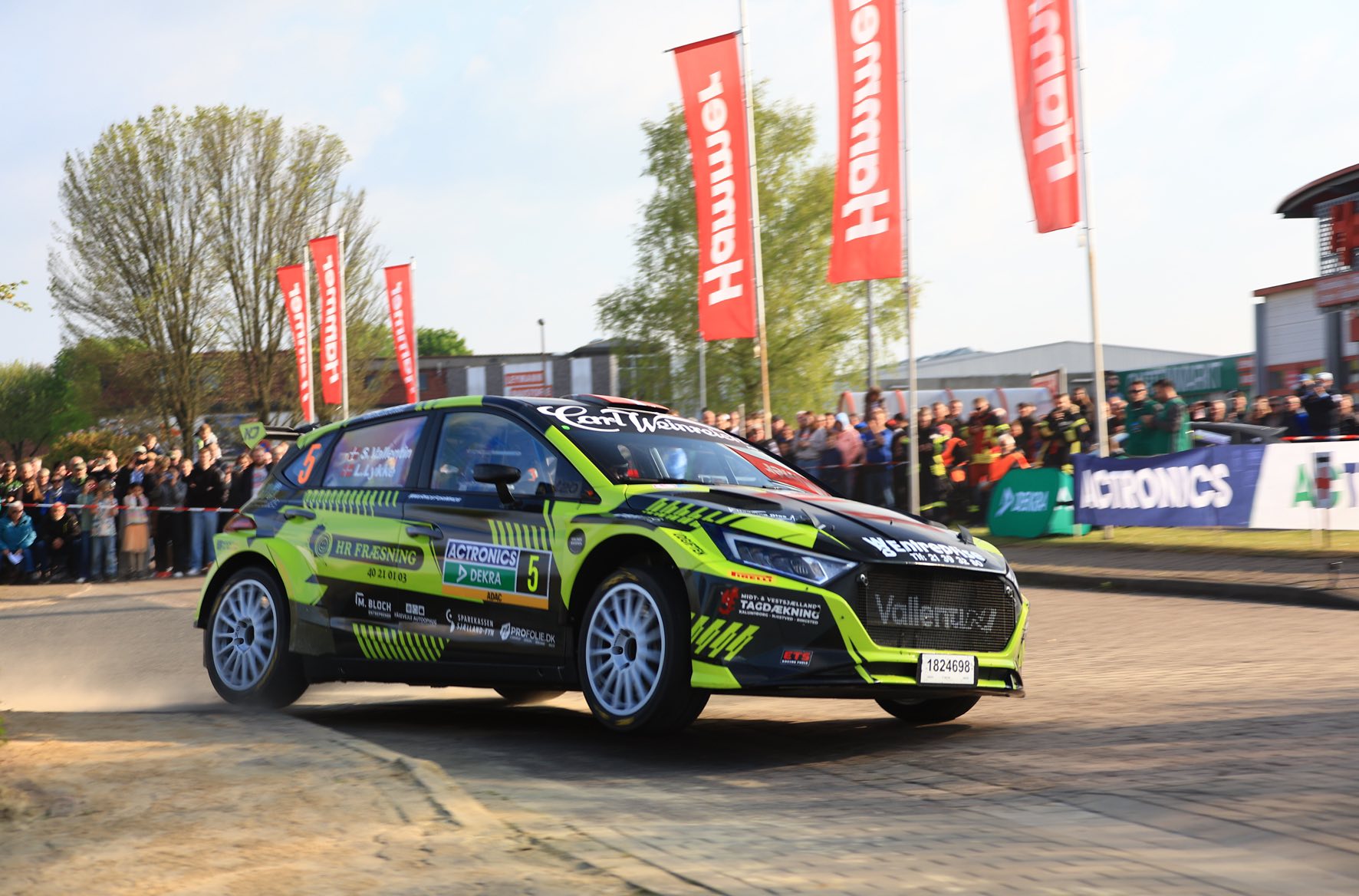 Simon Vallentin, Holbæk, var tilfreds, da han sammen med co-driver Line Lykke Jensen, Hokksund, i weekenden kørte over målrampen i det tyske ADAC Actronics Rally Sulingen som den fjerdehurtigste i et felt med 96 biler.